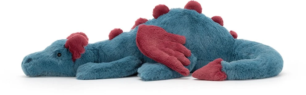 Deze glorieuze rustende draak is de lieve Dexter van het luxe knuffelbedrijf Jellycat.