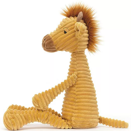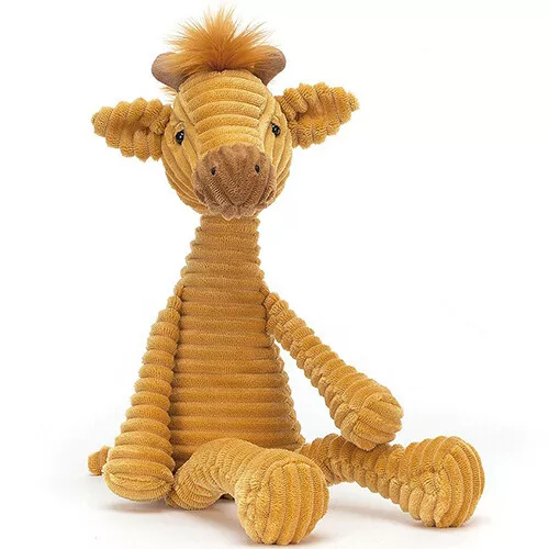 Met zijn ribfluwele vacht en pluizige manen voelt deze knuffelgiraf ‘Ribble Giraffe’ uit de Long Legs serie van het Engelse merk Jellycat verrassend aan voor kleine handjes. De innemende giraf heeft een caramelbruine snoet, slaperige, zwarte kraaloogjes, speelse oortjes en is aan zijn lange poten gemakkelijk vast te pakken.